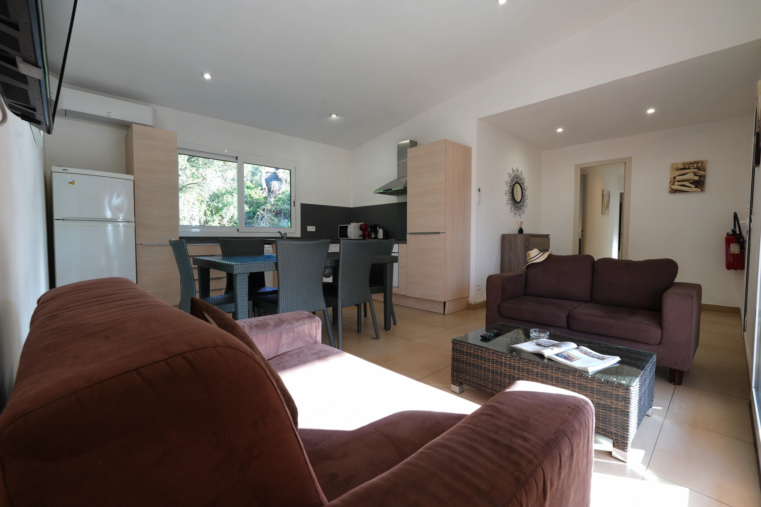 La villa Confort 3 chambres et piscine séduit par son atmosphère ombragée et sa superficie de 70 m². Elle accueille jusqu’à 7 personnes grâce à son fauteuil convertible dans le salon, elle dispose d'une suite parentale et deux chambres modulables en lits doubles. Le séjour lumineux s’ouvre sur une terrasse aménagée avec barbecue, idéale pour partager des repas conviviaux. Climatisation, wifi et cuisine tout équipée assurent un confort absolu. Sans oublier la piscine privative sécurisée pour profiter pleinement de votre séjour.