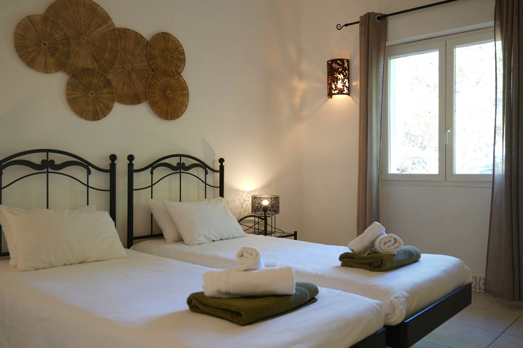 Avec environ 240 m², la Villa Premium est le modèle le plus luxueux du domaine. Conçue pour 10 personnes, elle dispose de 5 chambres avec téléviseurs, de 5 salles de bains, d’une grande terrasse avec pergola en châtaignier, d’un sauna, d'un jacuzzi privatifs et d’une piscine chauffée. Son vaste jardin privatif et ses espaces intérieurs lumineux en font un lieu d’exception, pensé pour conjuguer élégance contemporaine et authenticité méditerranéenne.